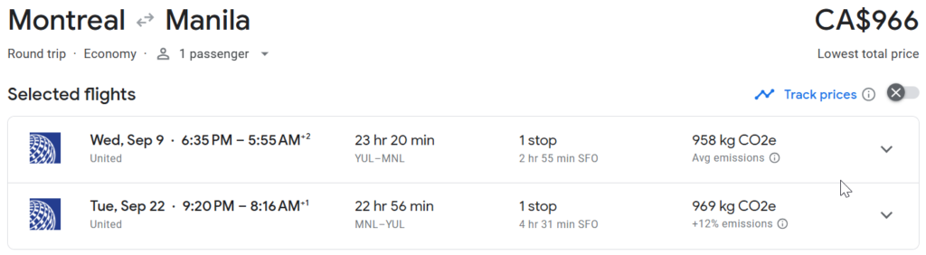 2. Enter Montreal (YUL) → Manila (MNL).