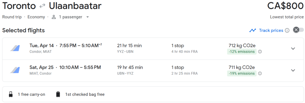 • There is a short layover in Frankfurt, Germany (Ulaanbaatar doesn’t have direct service from North America)